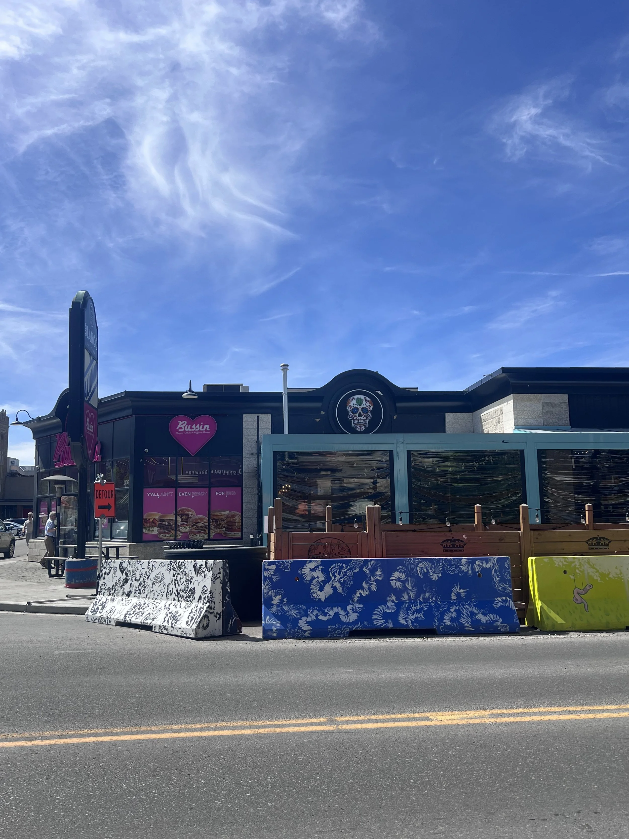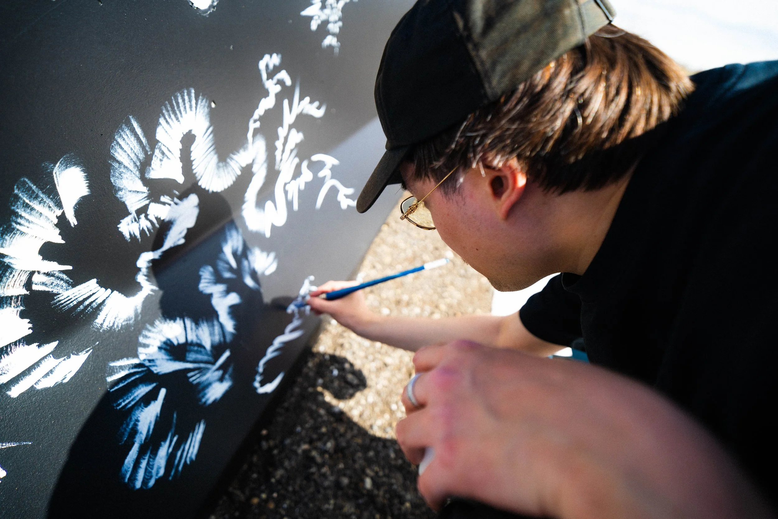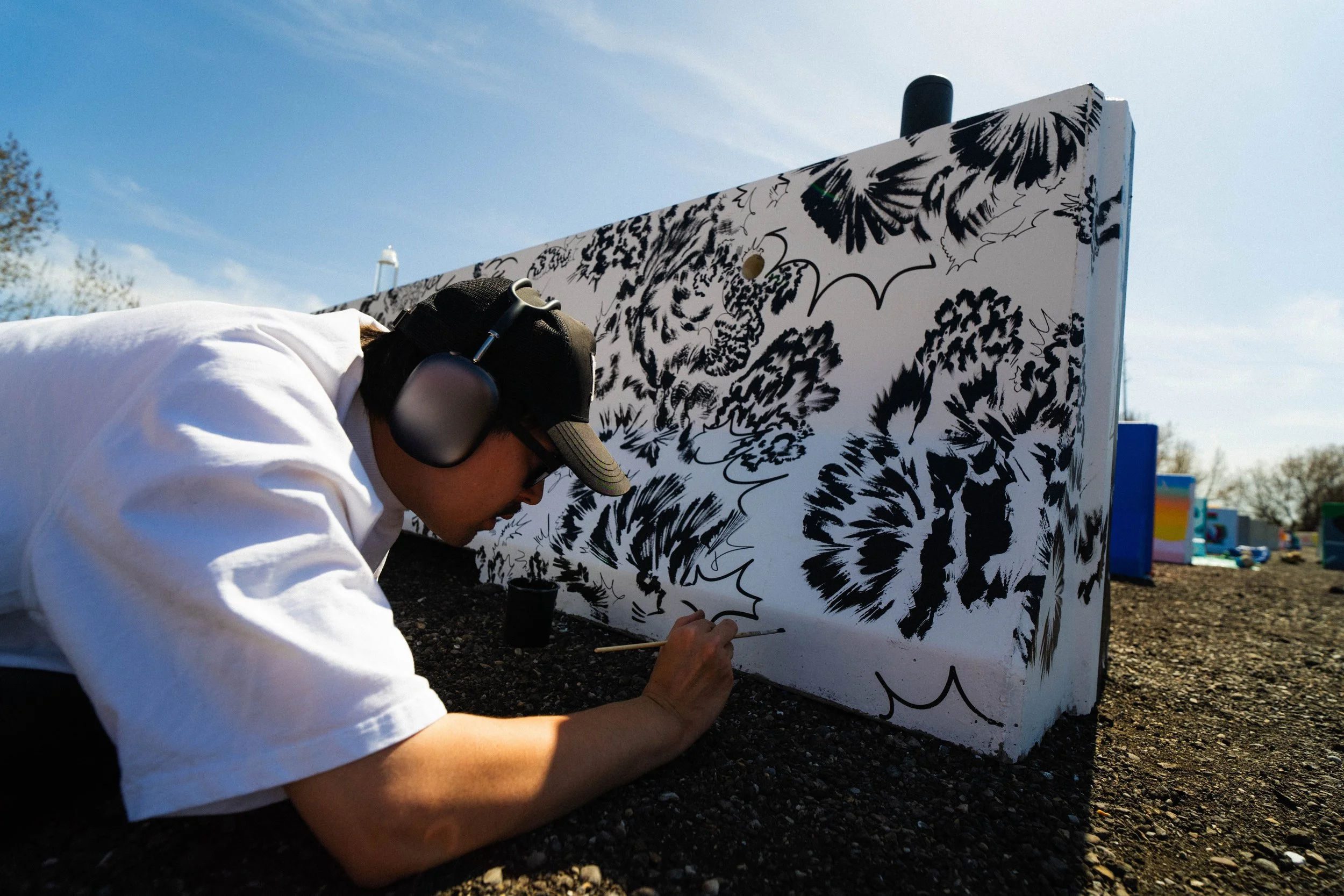 Double-sided road barrier murals commissioned for BUMP 2025, Calgary’s annual urban arts festival powered by local artists brightening up the downtown vibrancy.