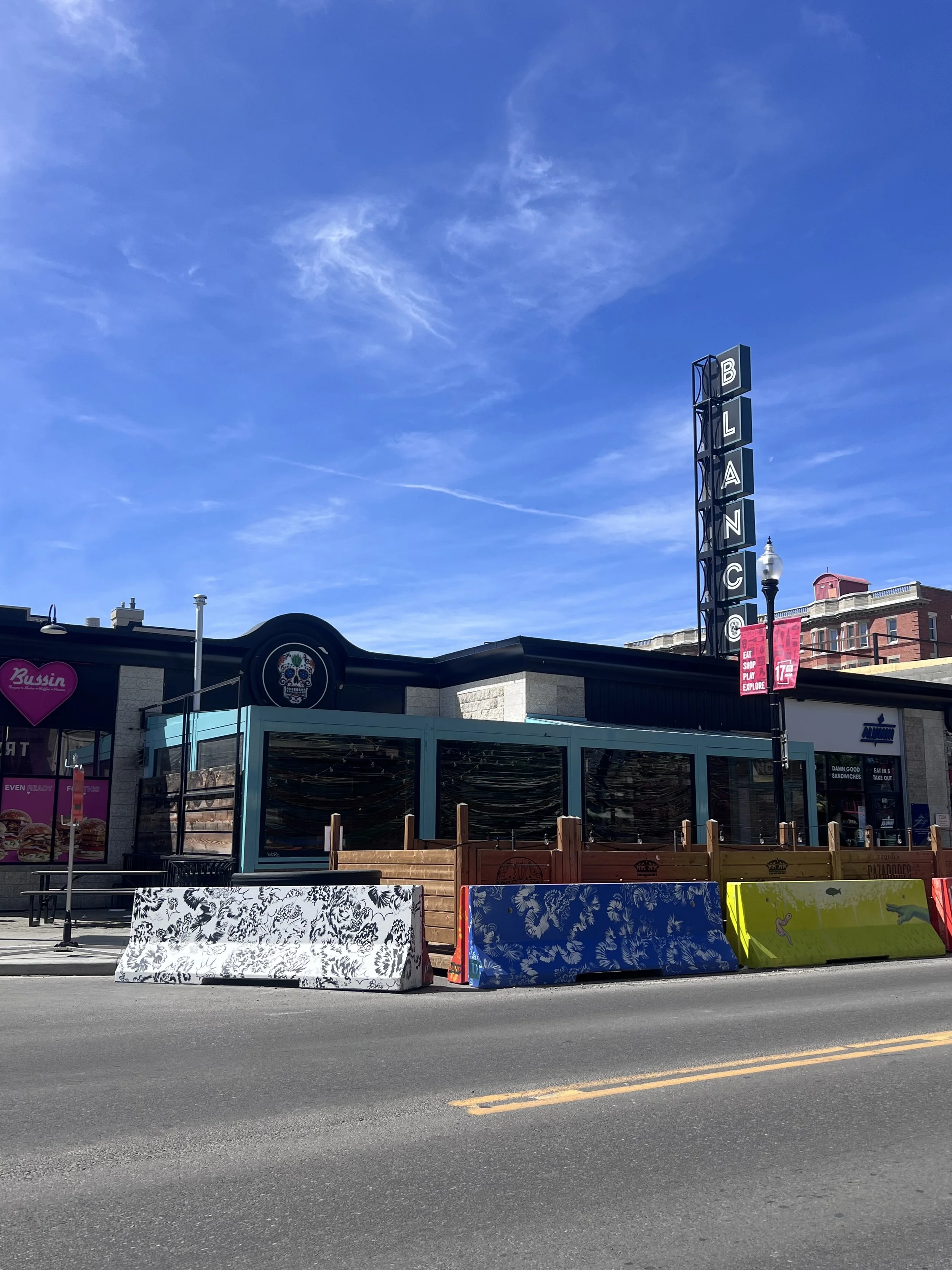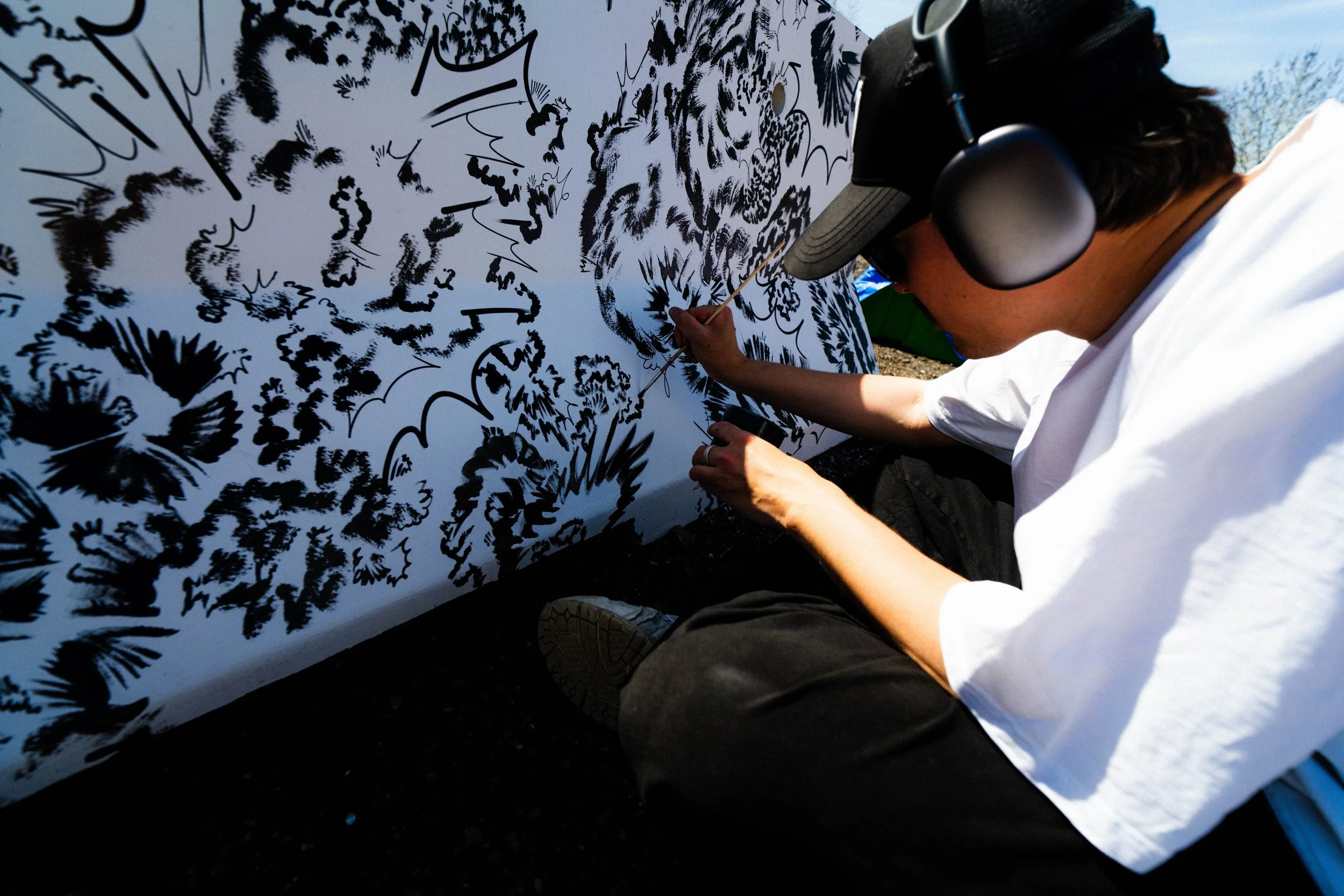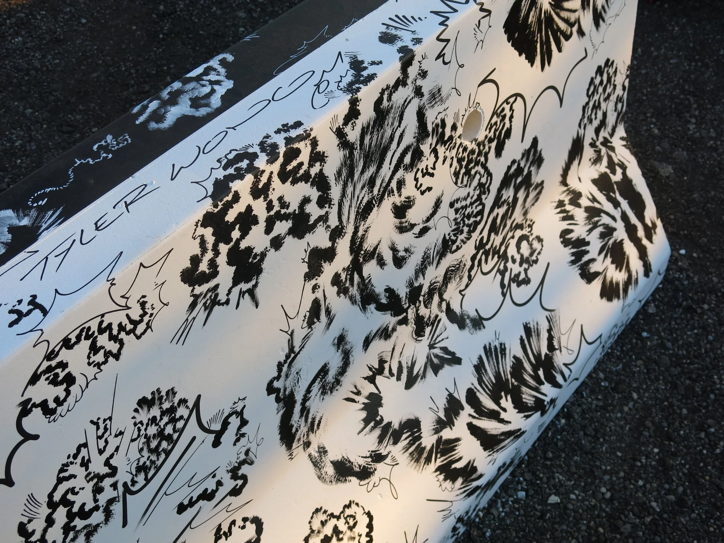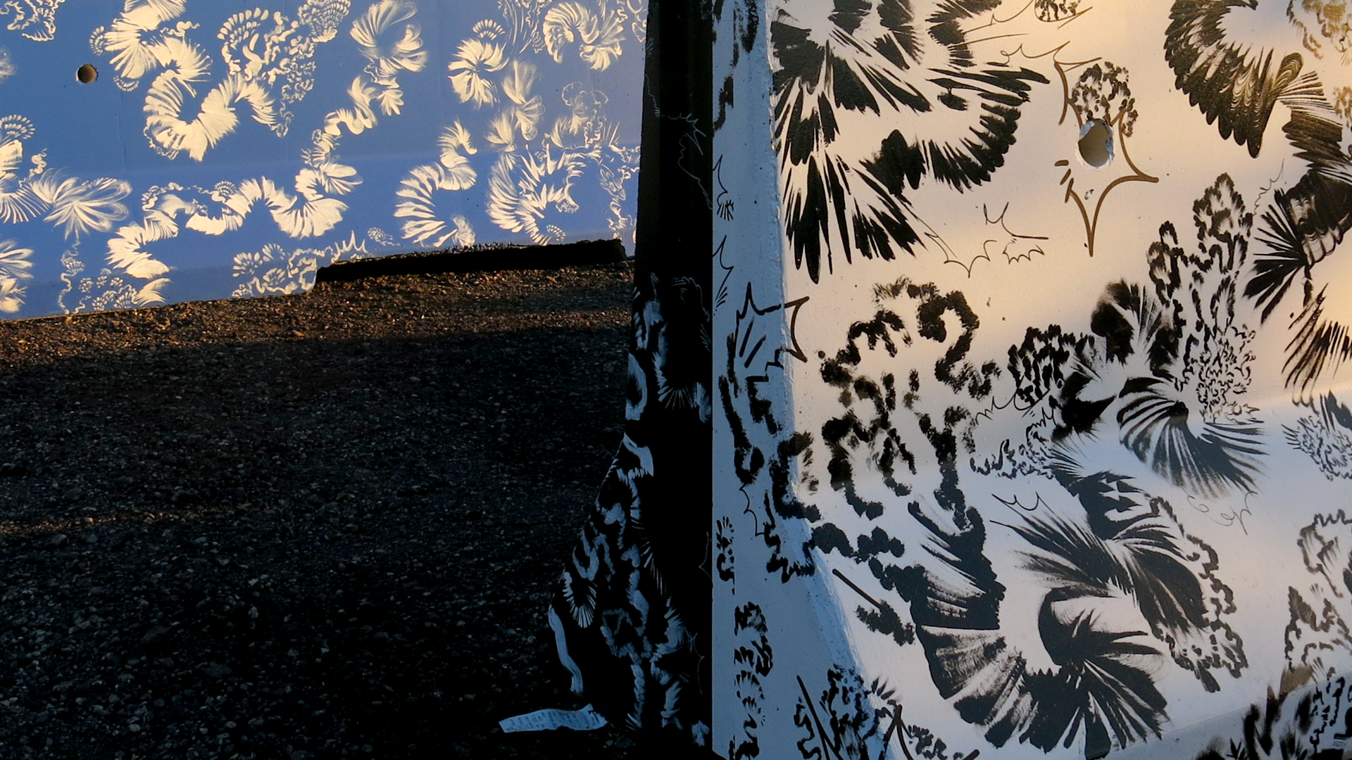 Double-sided road barrier murals commissioned for BUMP 2025, Calgary’s annual urban arts festival powered by local artists brightening up the downtown vibrancy.
