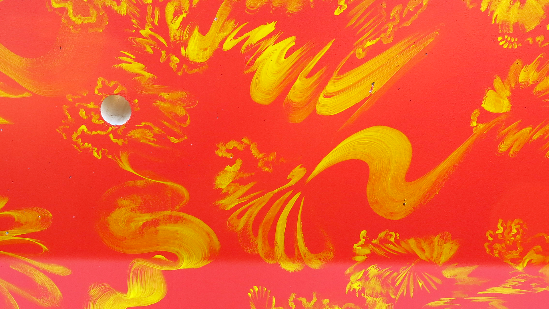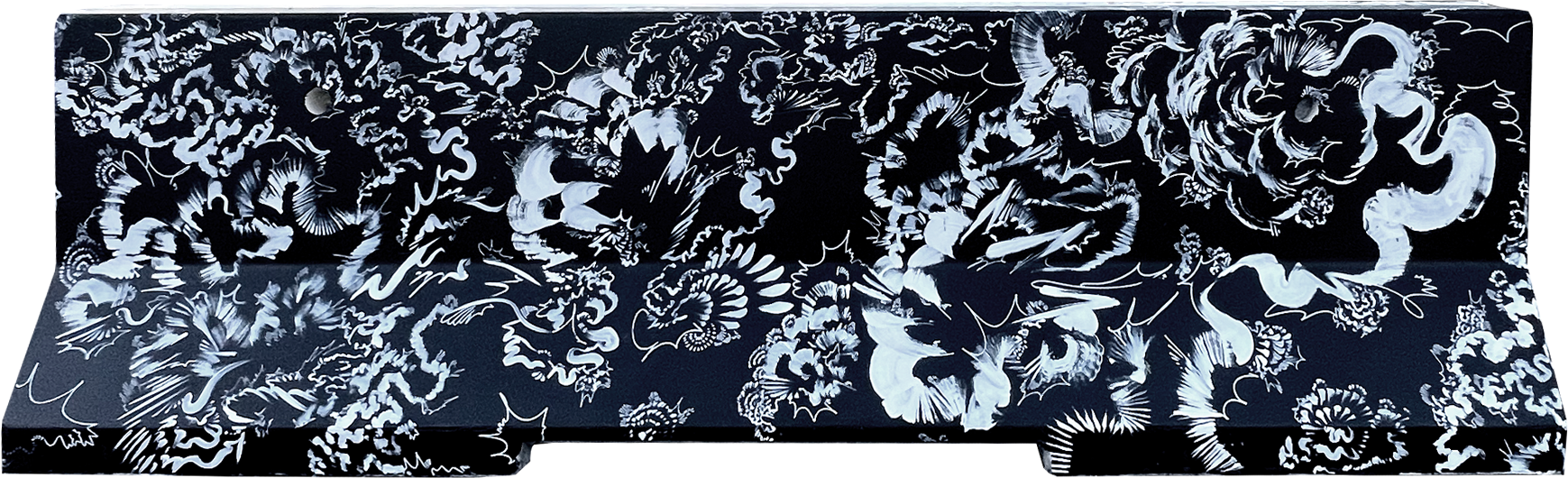 These were created with freeform brushwork, moving between expressive environments and textures. Hand painted with mixed-media ink and exterior paints.