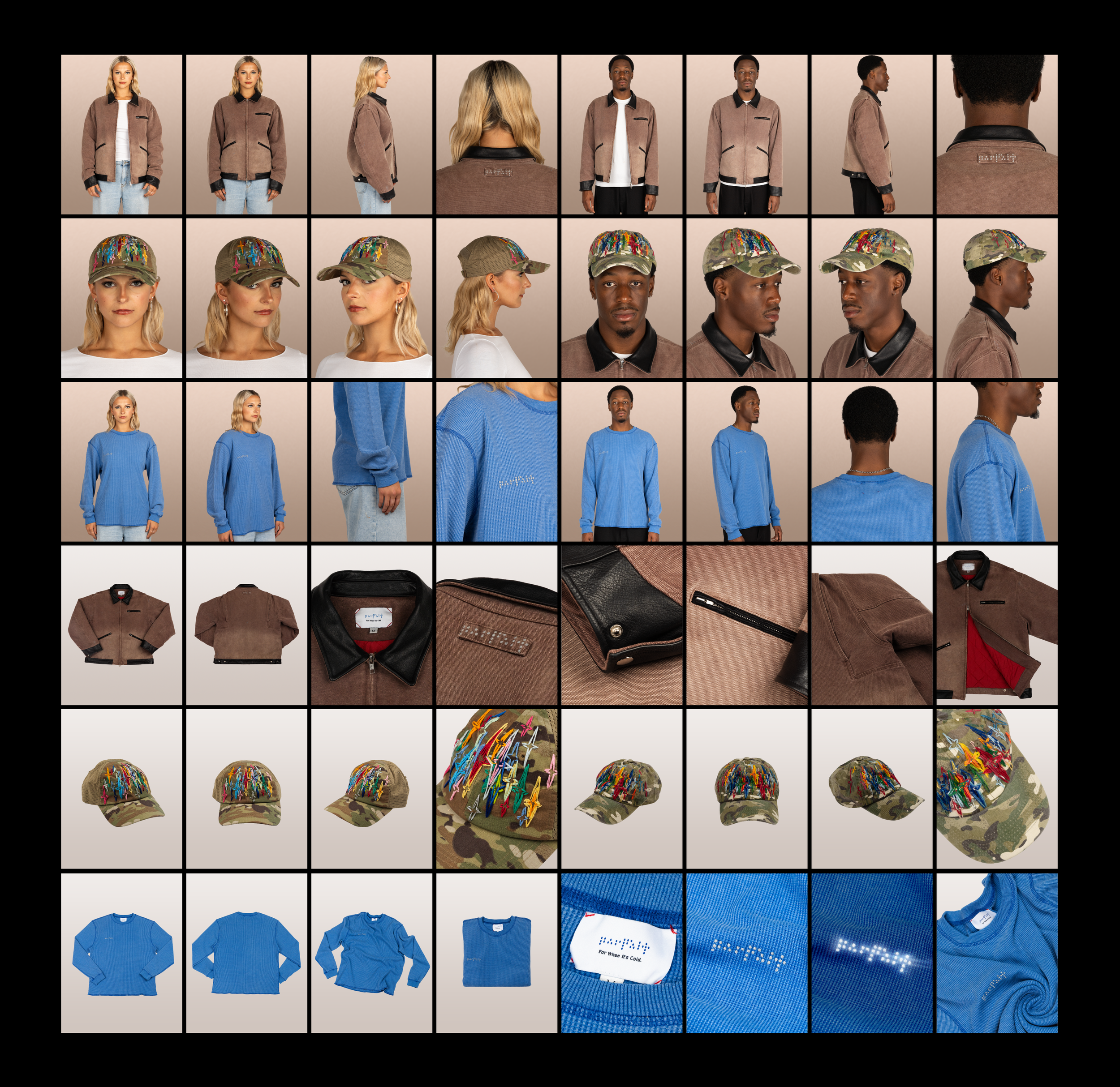 In a freeing creative process, we embraced the scrappiness of street with studio and blended worlds between photo, design, and direction to develop a natural brand language. Between custom work-jackets, thermal shirts, and hand-embroidered caps, we elevated everyday vibes into a curated fashion editorial.